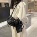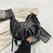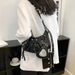 Women's handbag with rivets in one compartment with a secret pocket and silver hardware. Parameters - height 14 (cm), length 24 (cm), width 7 (cm), strap length 120 (cm)