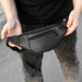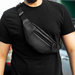 Stylish black Mars shoulder bag made of eco-leather, waist bag on the chest with 4 compartments Characteristics: Color black Material: eco-leather Size: 33 cm x 15 cm x 7 cm Shoulder strap: 100 cm x 4 cm (adjustable) Lining: polyester Fastex: black plastic Compartments: 4 pcs. Unisex Production: Ukraine.