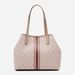 Model features: • Decor: logo • Double handles, height 23.5 cm • Clasp: magnetic button • Hardware: silver metallic • Removable flat bag • Lining: 100% textile